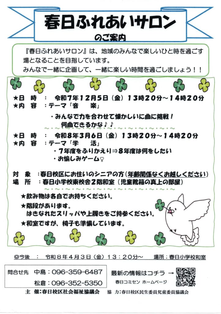 『春日ふれあいサロン』は、心温まるひとときを共有できる場を目指しています。参加者がさまざまなアイデアを出し合い、楽しくイベントを企画しています。